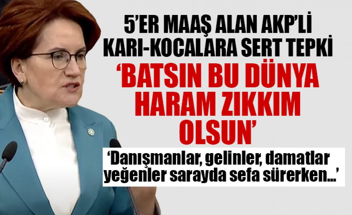 Pir Sultan Abdal'ın sözlerini örnek veren Akşener, "Demiri demirle dövdüler; biri sıcak biri soğuktu. İnsanı insanla kırdılar; biri aç biri toktu" dedi, "Bugün olan aynı şey budur. Yıllar önce Pir Sultan Abdal söylemiş. İşte AK Parti iktidarı da istihdam konusunda bu yolu seçiyor. İnsanlarımıza güvenceli istihdam sağlamak yerine yoksulluğa mahkum etmeyi, çaresizliği öğretmeyi, insanlık onurunu kırmayı tercih ediyor. Bu iktidar yoksullukla mücadele etmeyi, yoksulluğu yönetmeyi seçiyor. Yani 5 maaşlı danışmanlar, gelinler, damatlar ve yeğenler sarayda sefa sürerken... Adamın teki 5 alırken karısı da 5 alıyor, batsın bu dünya, batsın bu dünya. Kendisi 5 maaş alıyor, karısı da alıyor, haram olsun, zıkkım olsun" ifadelerini kullandı.