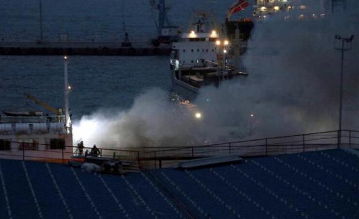 Dumandan etkilenen 30 kişiye limanda ambulanslarda müdahale edild