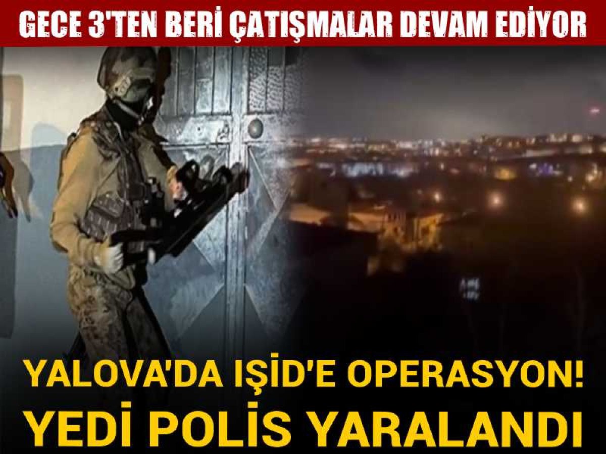 Yalova'da düzenlenen IŞİD operasyonu sırasında şüphelilerin ateş açması sonucu çatışma çıktığı öğrenildi. Valilik, 7 polisin yaralandığını ancak hayati tehlikeleri olmadığını açıkladı. Bölgeye Özel Harekât ekipleri sevk edildi. Çatışmalar gece 3'ten beri sürüyor. Bölgeden zaman zaman silah sesleri geliyor.