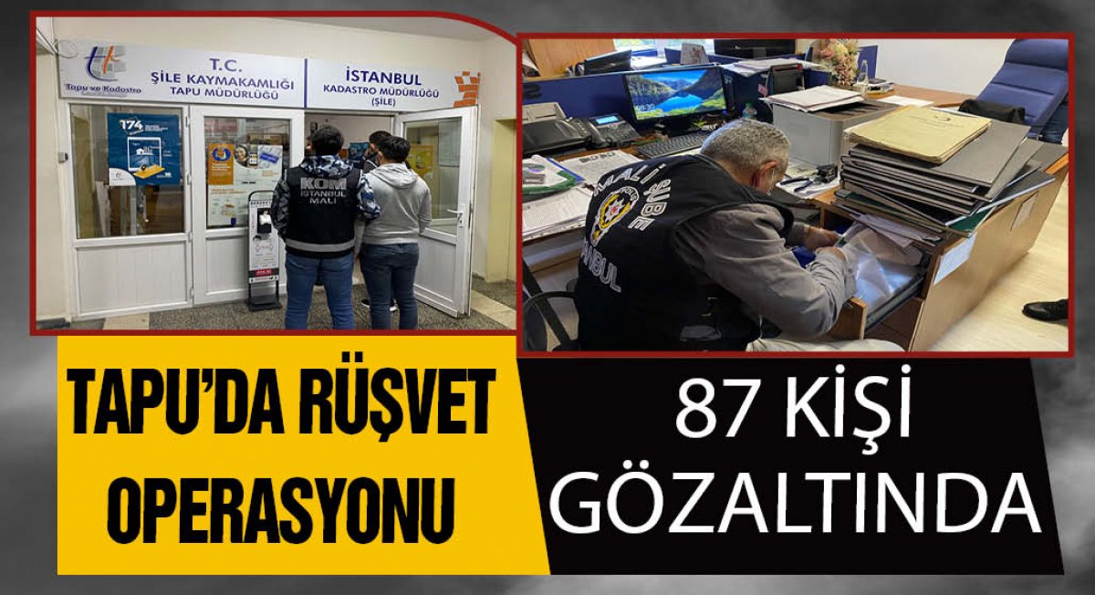 Şile Cumhuriyet Başsavcılığı, tapuda rüşvet iddialarıyla ilgili başlattığı soruşturmada aralarında tapu müdürü ve müdür yardımcısı olmak üzere toplam 87 kişi hakkında gözaltı kararı verdi.