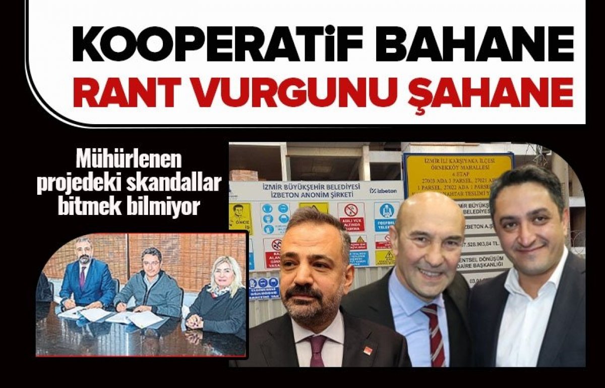 İzmir Büyükşehir’in eksik demir ve hatalı beton kullanımı nedeniyle mühürlenen kentsel dönüşüm projesinin altından rant oyunu çıktı. CHP İl Başkanı Aslanoğlu'nun başkanlığını yaptığı kooperatifin aldığı işi, kendisine yakın isimlere pasladığı ve yüksek kar imkanı sağladığı öne sürüldü.