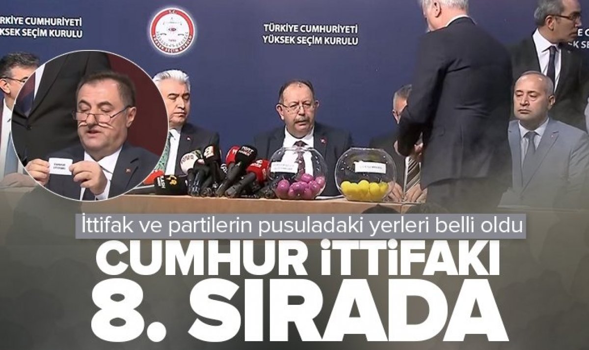 Yüksek Seçim Kurulu'nda, 14 Mayıs'ta yapılacak 28. Dönem Milletvekili Genel Seçimi'nde ittifakların ve siyasi partilerin birleşik oy pusulasındaki yerlerinin belirlenmesi için kura çekimi yapıldı. Buna göre Cumhur İttifakı 8. sırada, Millet İttifakı 18. sırada yer alacak. Memleket Partisi'nin Genel Başkanı Muharrem İnce 7. sırada yer alırken ATA İttifakı ise 19. sırada yer alacak..