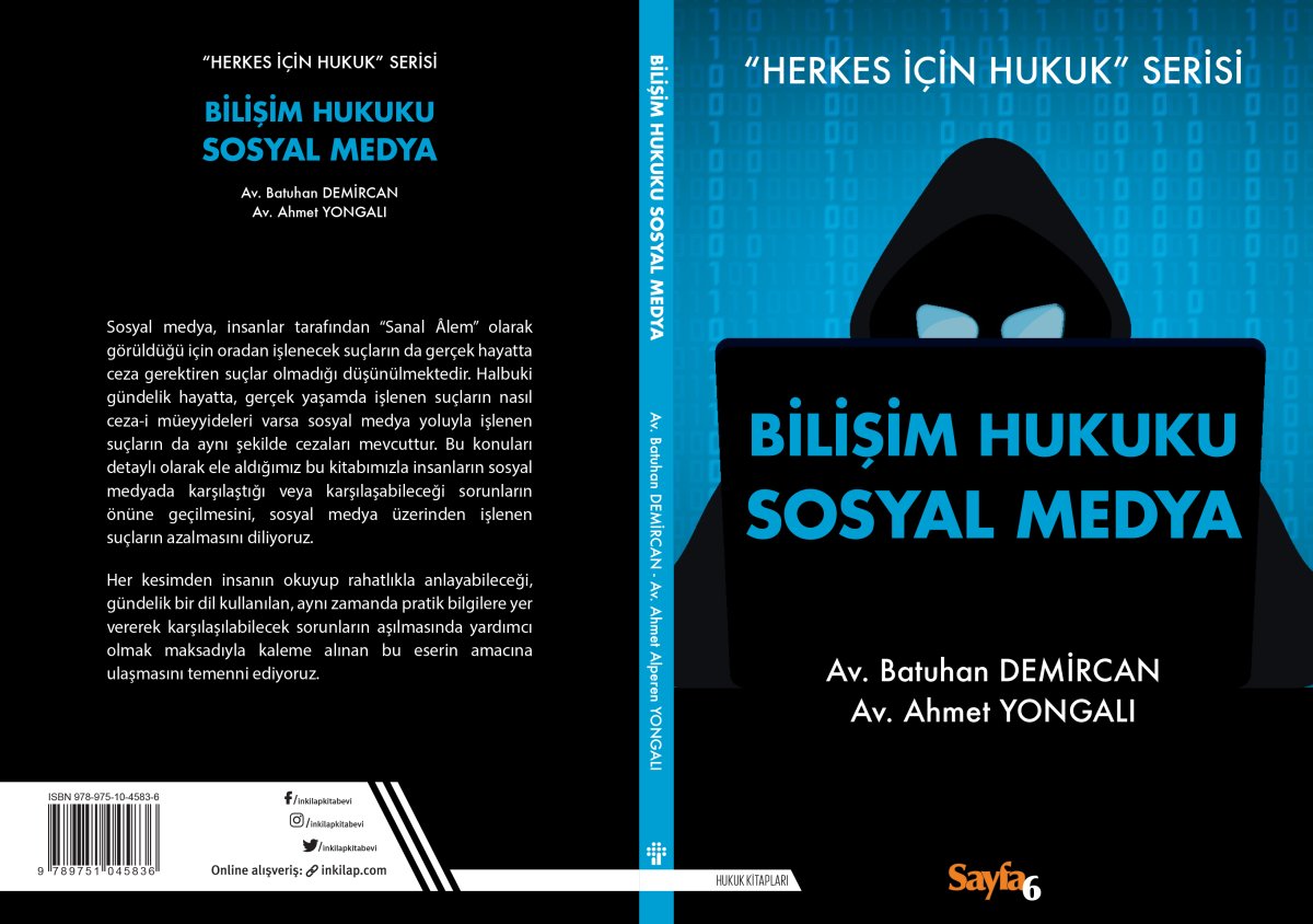 Sosyal medyada Avukat Batuhan Demircan ile Avukat Ahmet Yongalı, “Bilişim Hukuku ve Sosyal Medya” adlı bir kitap yazdı. Avukat Demircan, “Herkes için hukuk” serisinin ilk kitabıyla ilgili önsözde “Bilişimin ve sosyal medyanın hayatımızın her alanına nüfuz ettiği günümüzde bu konuların hukuki açıdan ele alınmaması hayatın olağan akışına aykırı olurdu. (…) Gündelik hayatta, gerçek yaşamda işlenen suçların nasıl ceza-i müeyyideleri varsa, sosyal medya yoluyla işlenen suçların da aynı şekilde cezaları mevcuttur. Bu konuları detaylı ele aldığımız bu kitabımızla insanların sosyal medyada karşılaştığı ve karşılaşabileceği sorunların önüne geçilmesini, sosyal medya üzerinden işlenen suçların azalmasını temenni etmekteyiz” ifadelerine yer verdi.