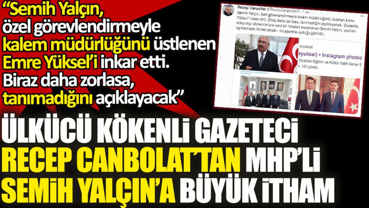 Ülkücü kökenli gazeteci Recep Canbolat'tan MHP'li Semih Yalçın'a büyük itham